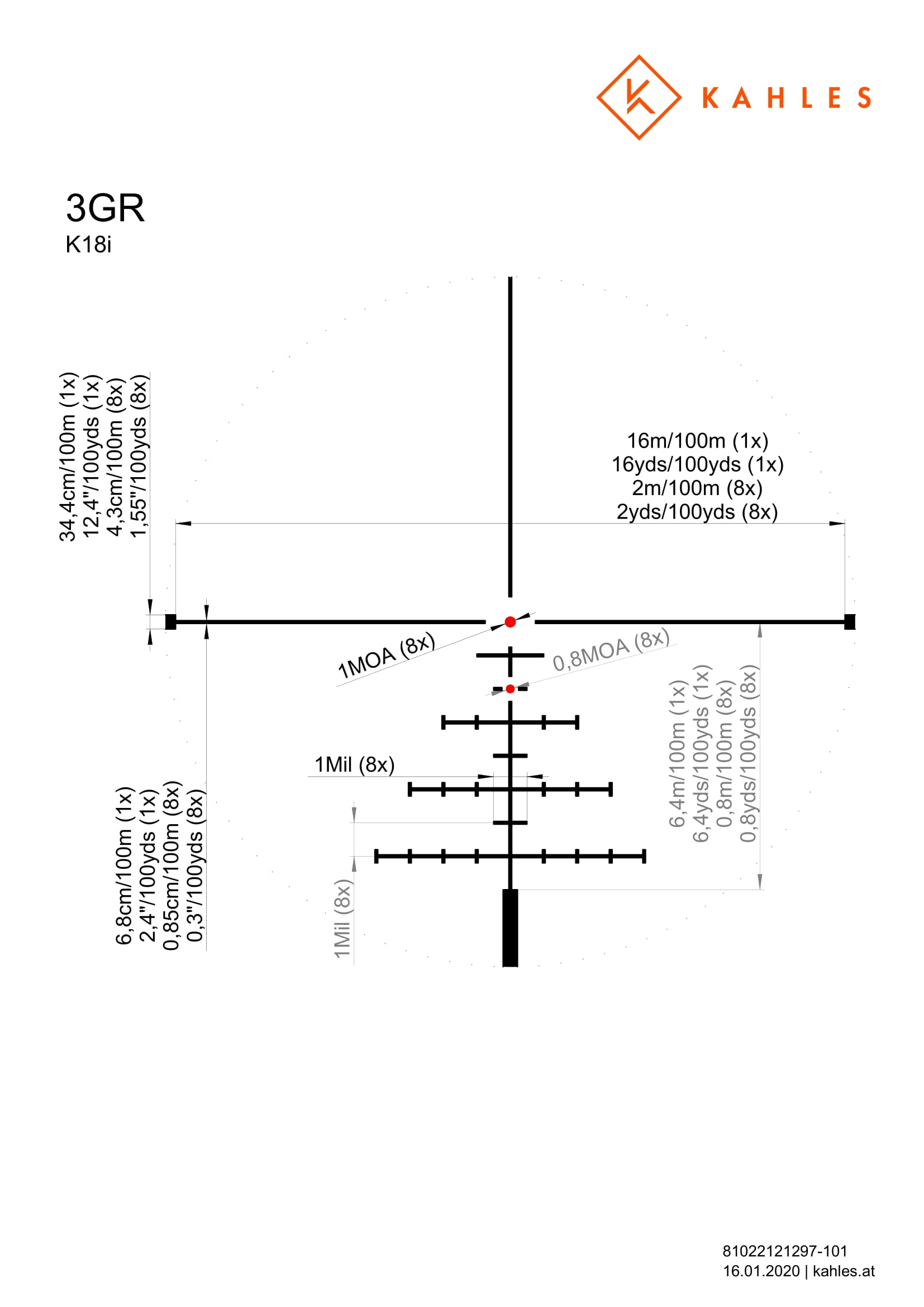 • regulacja punktu trafienia 0.1mRAD na 1 klik (regulacja zgodna z ruchem wskazówek zegara)